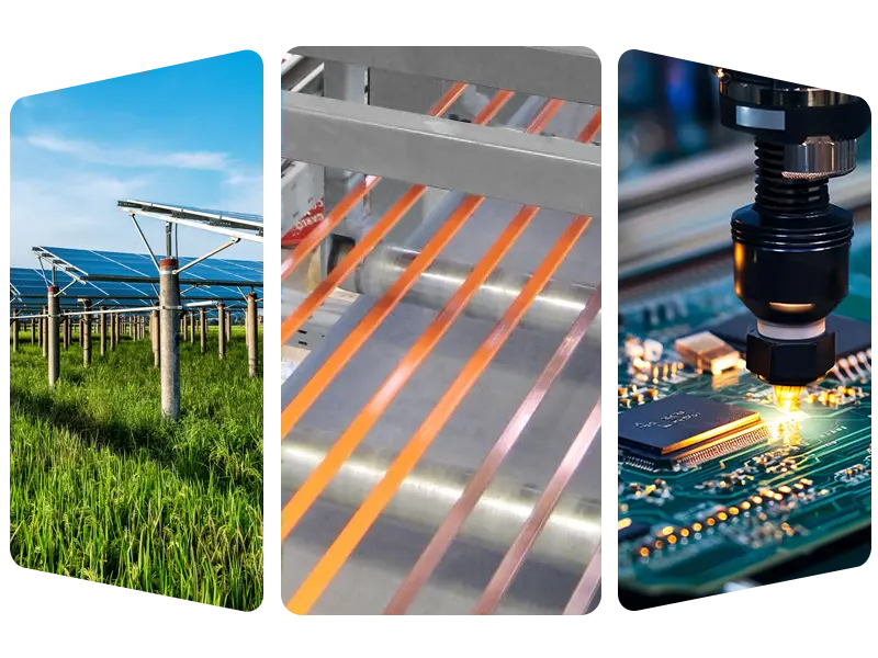 • Photovoltaic munda: kugadzirwa kwemazhinji e photovoltaic welding ribhoni uye mabhasi ekubatsira zvikamu zvinofambisa magetsi zvakanaka.